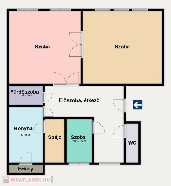 - Nyílászárók: cserélt szigetelt műanyag ablakok és bejárti ajtó, redőnyök és szúnyogháló