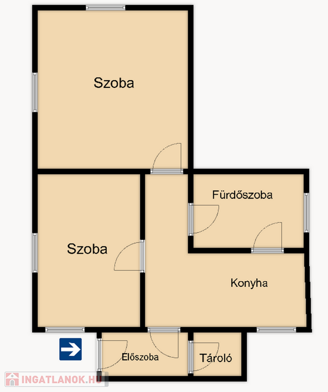 Két különnyíló, világos szoba, fürdőszoba, konyha található a jelenleg kályhafűtésű ingatlanban. Gáz bevezethető.