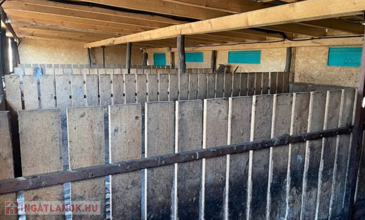A terület 1561 m2, a főúttól 200 m-re található. A 2021-ben épült állattartásra alkalmas gazdasági épület minden higiéniai követelménynek megfele. A területen 5 db - összesen 80 m2-es állat boksz van felépítve, szükség esetén raktárnak is használható. Az ólak 15 cm-es vasbeton alappal és zsalupressz falakkal rendelkeznek.