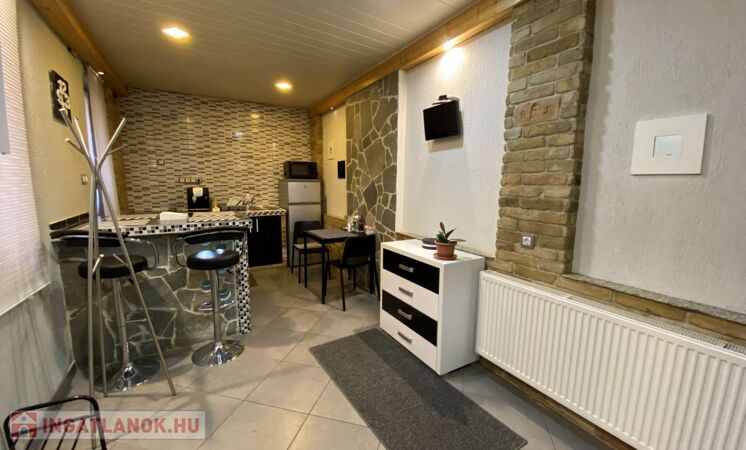 Az ingatlanban található egy fürdőszoba zuhanyzóval, wc-vel; étkező-konyha egybenyitva; egy szoba, melyben galériás megoldással került kialakításra a hálórész.